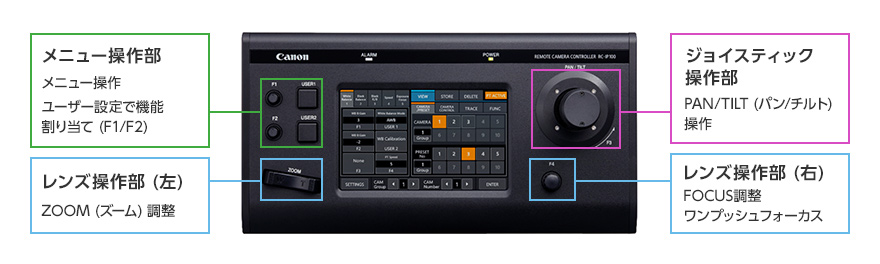 RC-IP100は、ジョイスティック、ズームレバーを搭載しているため、リモートカメラを直感的に操作可能です。