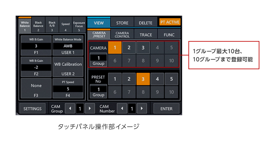 コントローラ1台でリモートカメラを切り替えて操作することができるため、映像制作現場において効率的なカメラオペレーションが可能です。