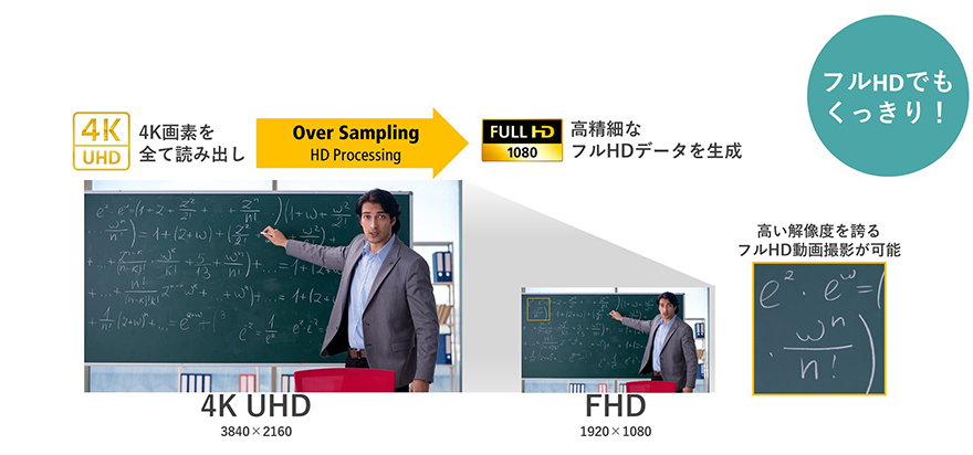 4K UHD映像だけでなく、Over Sampling HD Processingにより、フルHDもさらなる高画質を実現。