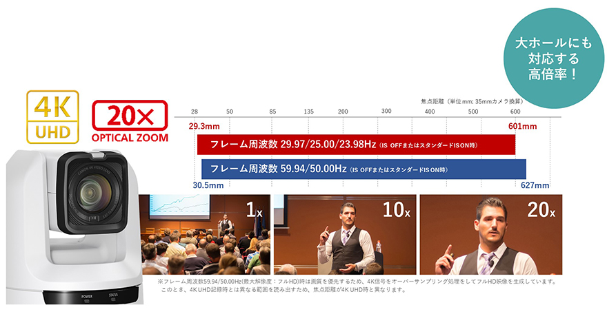 小会議室から大ホールまで対応する広角&高倍率ズームレンズ