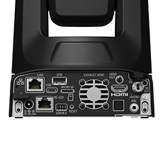 映像制作や放送の現場で用いられるさまざまな機器との接続や拡張性に対応するため、各種の端子を設けています。HDMI、SDI、IP出力に加え、USB接続によるWEBカメラとしての利用も可能です。