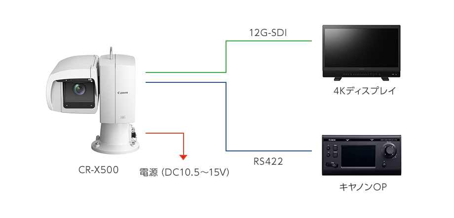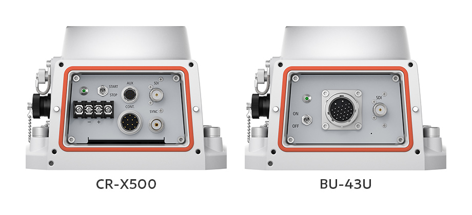 CR-X500はレセプタクルのコネクタ(DC電源、RS422、12G-SDI、GEN LOCK、AUX)がそれぞれ独立したタイプとなっております。