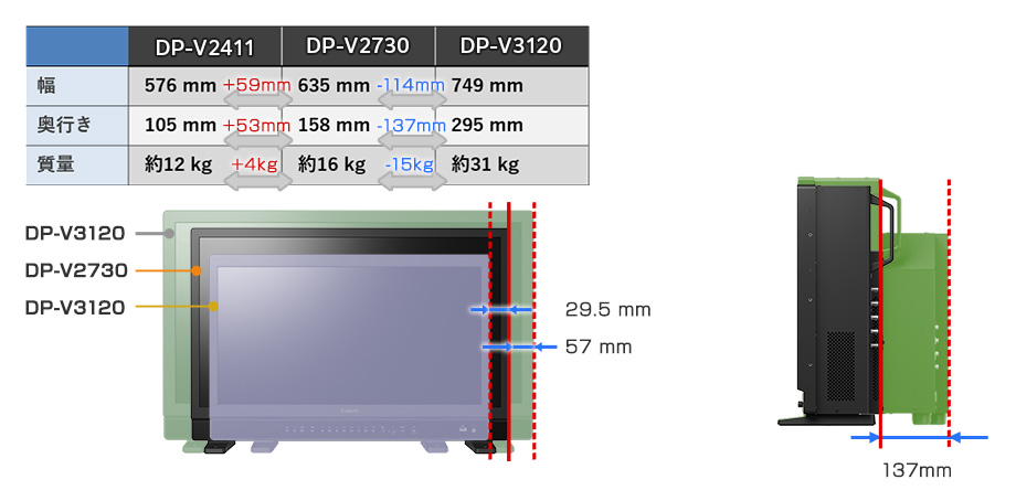 キヤノン 業務用ディスプレイDP-Vシリーズとして、初めて27”パネルを採用。