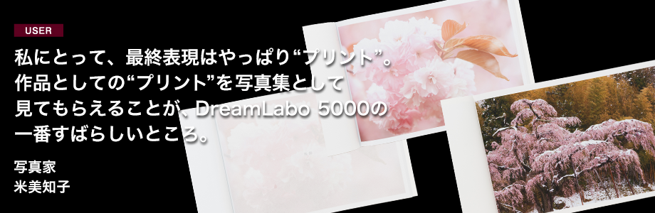 自然の風景を独特の視点で切り取り、色彩豊かな表現を描き出す写真家・米 美知子さん。2017年3月、写真展「桜もよう」に合わせて作られた作品集づくりを通して、米さんが感じたDreamLabo 5000の印象と可能性について話を伺いました。