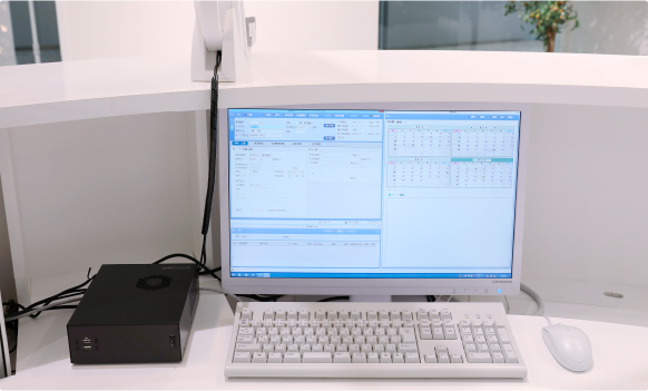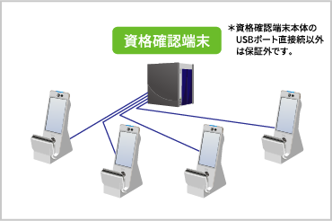 オンライン資格確認の利用には、顔認証機能付きカードリーダーの他、レセプトコンピュータに接続するための資格確認端末が必要です。ハードウェア基準に準拠、Hi-CARAとの動作確認済み端末をご用意いたしました。1台の資格確認端末に最大4台まで接続することができ、業務の効率化に貢献します。