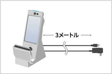 電源ケーブル・USBケーブルの長さが3mあり、様々な設置環境に対応