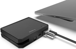 またセキュリティワイヤーを取り付けることも可能で、金融機関のセルフ窓口での本体の盗難を防げます。
