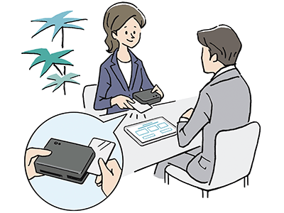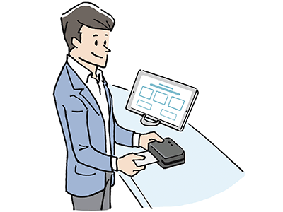 また、キャッシュカードを読み取ることで、口座振替をその場で簡単に行うことが出来、支払業務の効率化とお客さまの利便性向上を両立出来ます。
