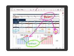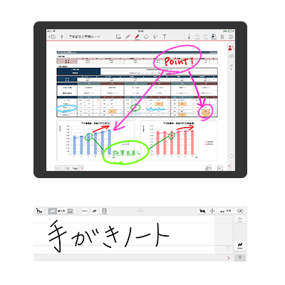 これまでになかった相互に手書きメモができるコミュニケーションツール。キヤノンのプロジェクターも使えばさらにディスカッションの質があがるでしょう。