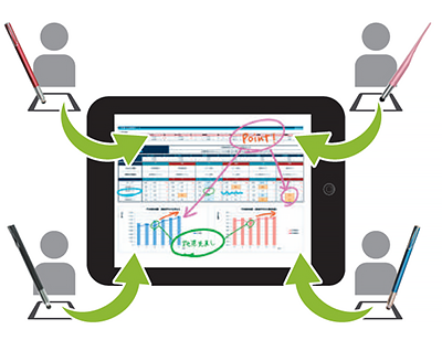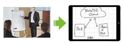 白紙の頁を簡単に追加出来るので、その場でホワイトボード代わりにディスカッションをはじめることも可能です。