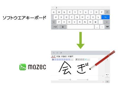 ソフトウエアキーボードは入力が面倒ですが、mazecなら現場でも片手で素早く入力可能です。メモを後からテキスト変換も可能です。