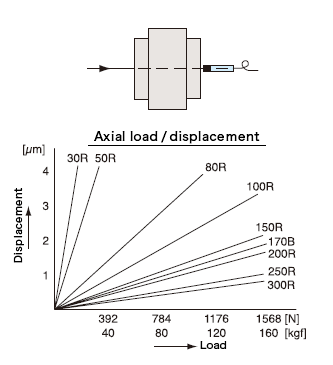 Axial stiffness:Power to displace the thrust plate 1μm in the axial direction.(unit:N/μm)