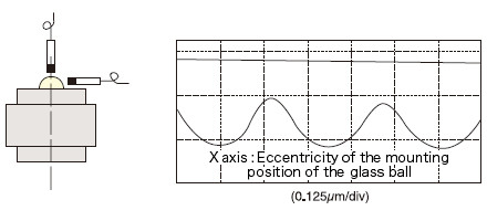 Measure a precision polished glass ball gauge placed on the thrust plate by optical sensors of X-Y axis and draw lissajous figure.