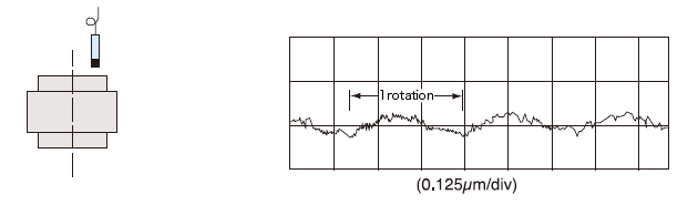 Measure the axial runout of the thrust plate (upper surface) with an optical sensor while rotating the thrust plate once.