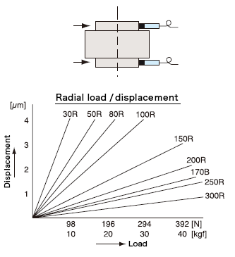 Radial stiffness:It is 1μm power to let you displace with a thrust plate in the radial direction.(unit:N/μm)