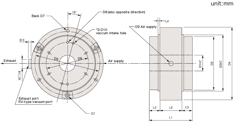 D3 | - | - | Φ84 | Φ110 | Φ160 | Φ200 | Φ255 | Φ305 |