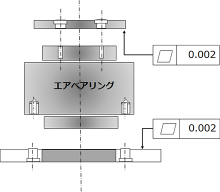 エアベアリングは軸受け隙間が非常に小さいため、平面精度の悪い部品を取り付けると変形が生じトラブルの原因になります。