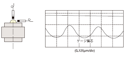 スラストプレートの中心により外周へ一定距離離れた位置での上下変位を電気マイクロメータで測定する。標準端面振れは1μm以下(オプションにより0.3μm以下可能)