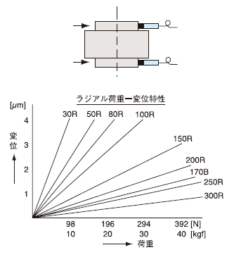軸受け隙間は荷重により狭くなりますが、安心してご使用いただける荷重を示します。