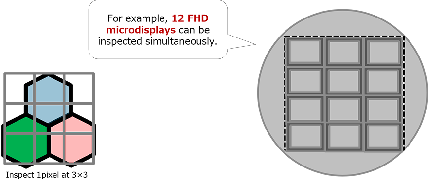 To inspect several microdisplays simultaneously, the required sensor pixel allocation is as follows.