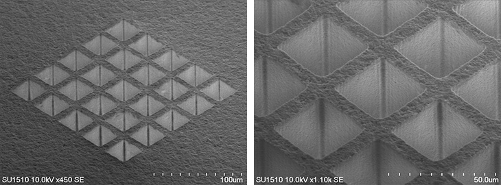 加工条件 | 四角穴:30μm × 30μm 穴の壁厚:10μm |