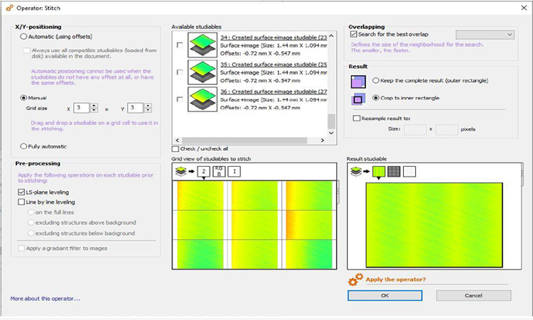 測定・制御ソフト「smartVIS3D」の「stitching」と対応し、広域の解析が可能。