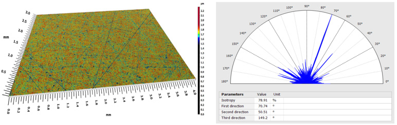 ホーニング加工などによるクロスハッチなど、方向性のある構造の角度分布などの評価が可能になります。