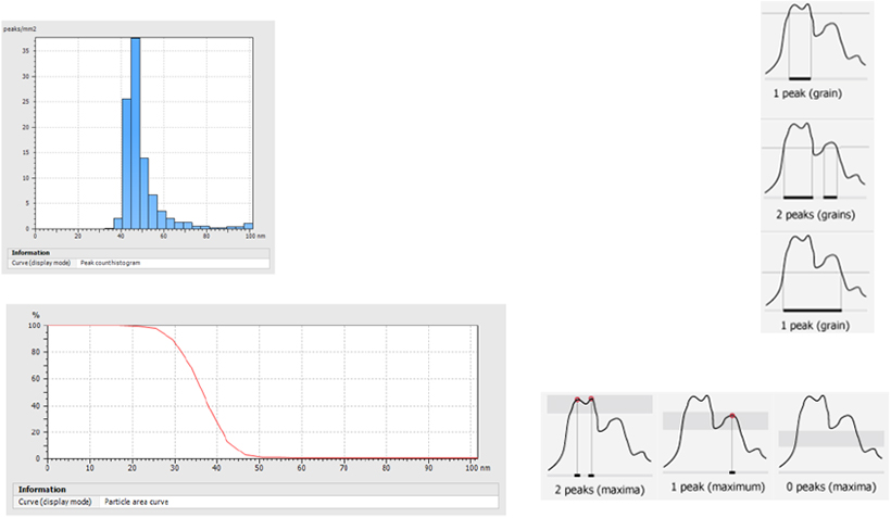 ある高さ、もしくは高さ領域を指定し、山の数や山頂の数をカウントできます。