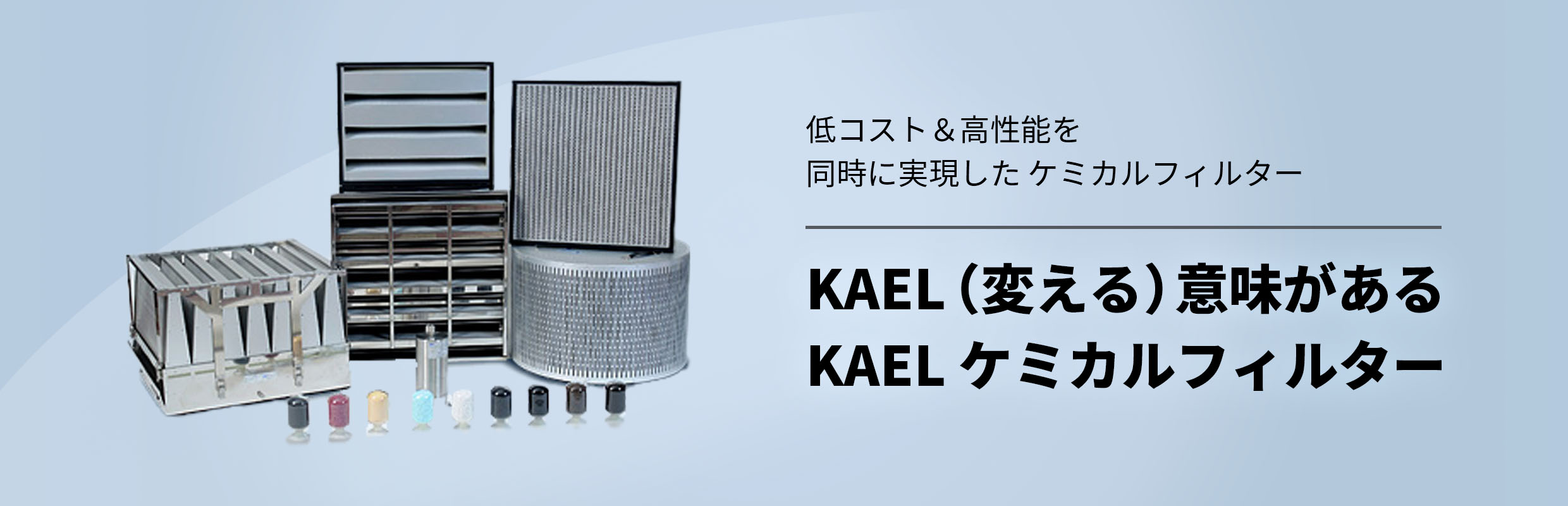 - 濾材[=Media]の高性能 Ion exchange resinが、空気中の微量汚染物質を効果的に除去