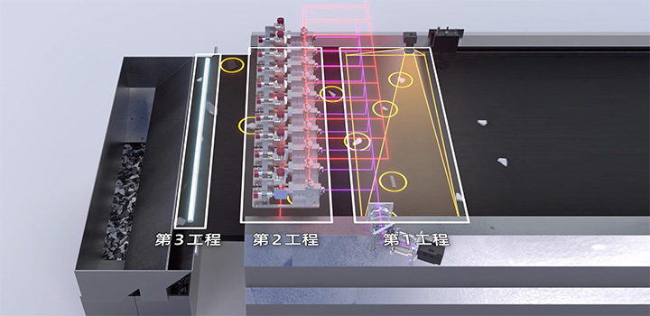 キヤノンのトラッキング型ラマンプラスチックソーターは主に3つの工程で選抜処理を行ないます。