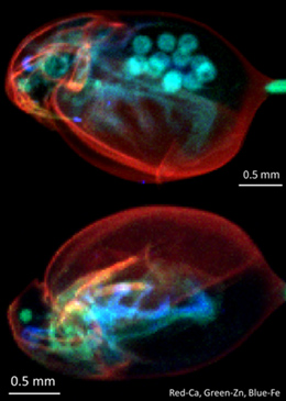 - カルシウム(赤)、亜鉛(緑)、鉄(青)