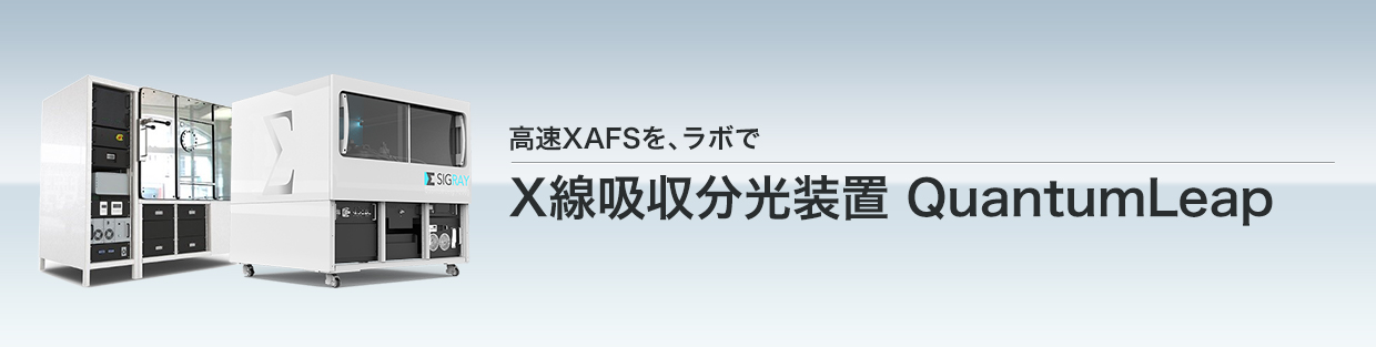Sigray社のX線吸収分光装置“QuantumLeap”は、特許取得済の高輝度マルチターゲットX線源と放射光施設で培ったX線光学技術を備え、ラボにおける高速XAFSを実現した装置です。約100µmの空間分解能とサブeVのエネルギー分解能を有し、数分~数十分でのXANES測定やEXAFS測定が可能です。