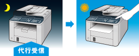 最大約512枚※のメモリー代行受信が可能です。終業後はメモリー保存し、翌朝出力するなど、不在の時も安心です。