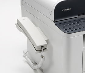 本体にオプションのハンドセットを接続することで、ひとつの回線をファクスと電話で兼用できます。送受信先との通話に便利です。