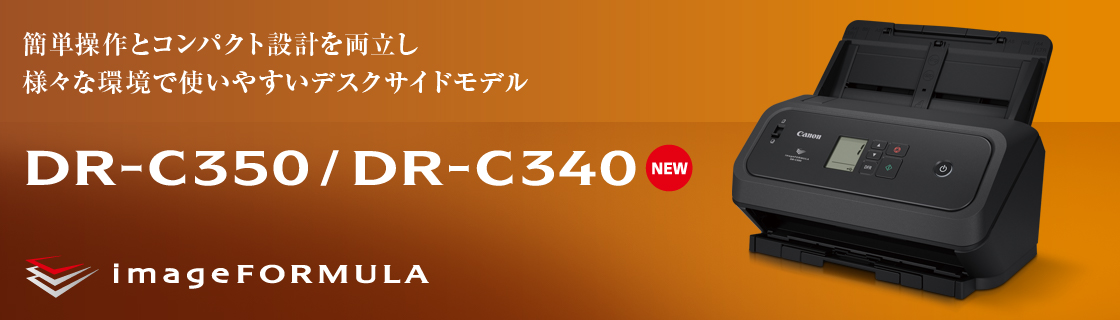 カラー/白黒ともに片面50枚/分(DR-C350)、40枚/分(DR-C340)の高速スキャンが可能。積載枚数も100枚まで可能で用紙搬送性能も強化しました。