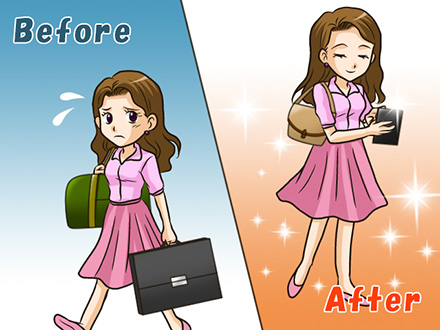 「1日に2~3件の打ち合わせがあると、荷物がかなり多くなります。仕事の終わりに飲み会がある時は、大きな荷物を抱えていかなければならず、カッコ悪くて嫌でした。そもそもこの仕事を始めてから、小さくてかわいいバッグを使ったことがなくて…… でも資料をタブレットに入れて持ち歩くようになってからは、荷物が格段に減り、スマートな格好で仕事をできるようになりました」