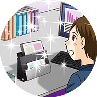 「DR-C225II」は、ADF(自動原稿送り装置)に30枚の用紙をセットして、1分間に25枚もの書類を取り込むことができる。Mさんのように、大量の書類を整理するという目的には打って付けだ。たくさん溜まった書類を取り込む作業は、随分はかどったようだ。