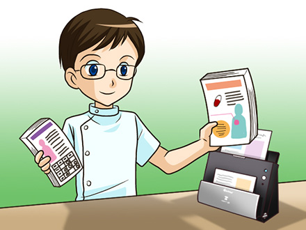 ベテランとなったいまでも、Tさんは勉強熱心だ。たとえば治療のための新薬が発表されると、院内の薬剤師に頼んで資料を取り寄せているという。実際の現場では使われないこともあるのだが、入手した資料はちゃんと保管しているというのだ。これらの資料を「DR-C225II」で電子化すれば保管に場所を取られることもなく、いつでもPCやタブレットから参照できる、そうTさんは語ってくれた。