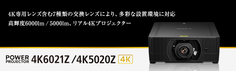 レーザー光源を搭載したリアル4K解像度6000lm/5000lmクラスのプロジェクターの、サイズ・質量において。2019年7月現在(キヤノン調べ)。交換レンズ含まず。