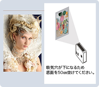 レーザー光源や優れた冷却システムの採用により、上下方向360度、どの角度でも設置が可能。投写画面を90度傾けた縦置き設置「ポートレート投写※」もできます。
