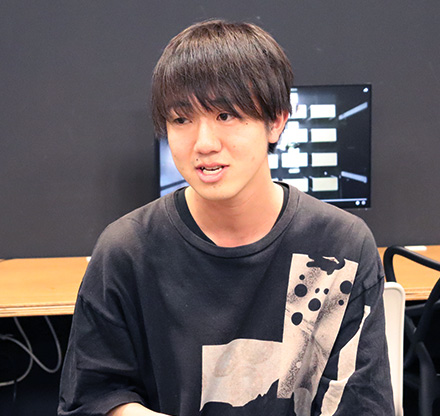 井口 隆佑氏:作品の製作はPCを使って行っていましたが、PCの画面を見ているときと、プロジェクターで映像を映してみたときとでは、作品に関する感想が全く違いました。床や壁への大画面投影で臨場感や没入感が違ったなどもありますが、画面ではなく実際に身体を使って体験できたように感じられて新鮮でした。