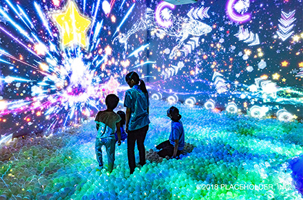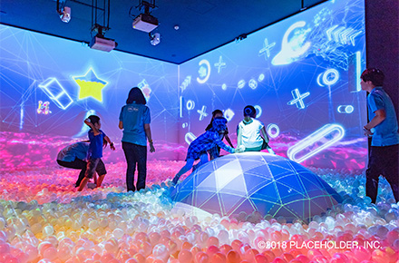 数万個のボールとプロジェクター、センサーを駆使した新しいデジタルボールプールです。プロジェクションマッピングされたプールは常識を覆す幻想的な空間を演出、また心揺らぐ音楽の中で思いっきりボールで楽しめるアトラクションになっています。手の先から足の指先まで全身の触覚を刺激しつつ視覚と聴覚を刺激する映像、音楽で楽しめます。