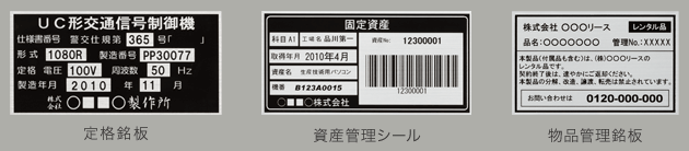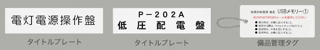 PP550なら、シートロールを使用して定格銘版や資産管理シール、物品管理銘板など、プレートを使用してタイトルプレートなどが簡単に作成できます。