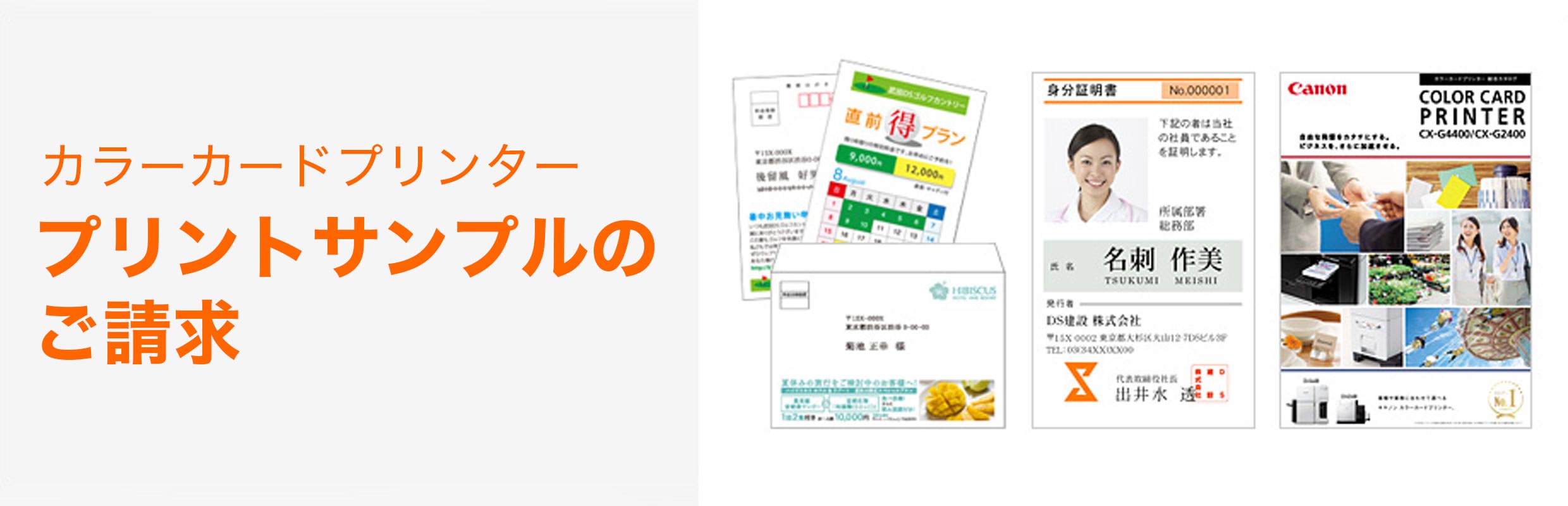カードプリンターの購入をご検討中のお客さまに、カードプリンター商品カタログや出力した名刺、プラスチックカード、ハガキ、封筒をセットにしたプリントサンプルをはじめ、お役に立つ資料をお届けしております。