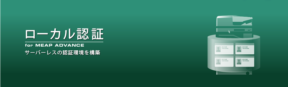 ICカード認証 for MEAP ADVANCE/ICカード認証 for MEAPに追加し、サーバーを必要としないICカード認証システムを構築します。本体内にユーザーテーブルを持つため、サーバーレスの認証環境を構築。管理の負荷を最小限に抑えます。