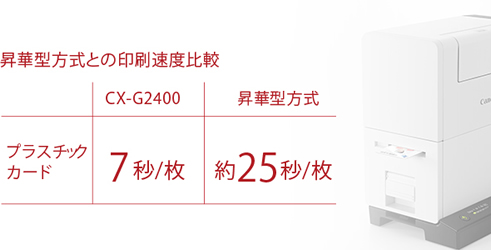 インクコストが1枚約1.2円※。外注するより安いのはもちろん、一般的な昇華型方式のカードプリンターよりも低コストでプラスチックカードがつくれます。