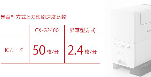 インクコストが1枚約2円※。外注するより安いのはもちろん、一般的な昇華型方式のカードプリンターよりも低コストでICカードがつくれます。