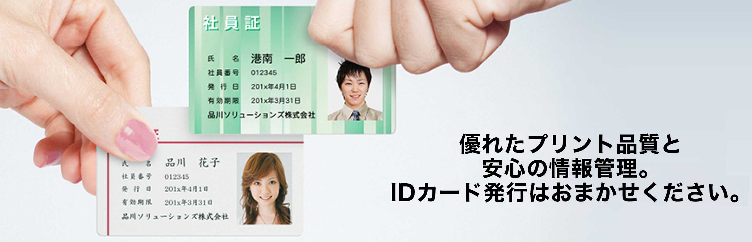 就業管理や入退室管理、食堂精算などのさまざまなシーンで利用する、社員証/学生証/会員証/資格証など、氏名や顔写真、バーコードなどが印刷されたIDカードの発行を行うサービスです。