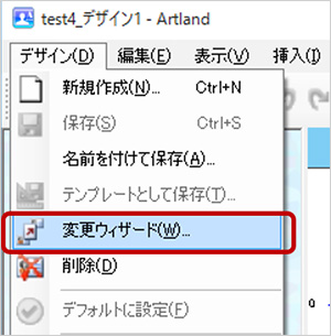 3.メニューから[デザイン]-[変更ウィザード]をクリックします。