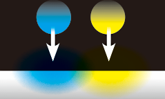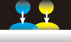 imagePROGRAF Proシリーズは「顔料インク」を採用しています。顔料は水に溶けない粒子状の色材で、インクの粒子が紙の表面に残ります。そのため水に溶けず、濡れてもにじみを抑えられ、保存安定性にも優れています。対して、染料インクは水に溶ける色材で、インク中の水とともにインクが紙の内部に浸透します。用紙表面にインクの凹凸ができず、均一な光沢感が得られるのが特徴です。